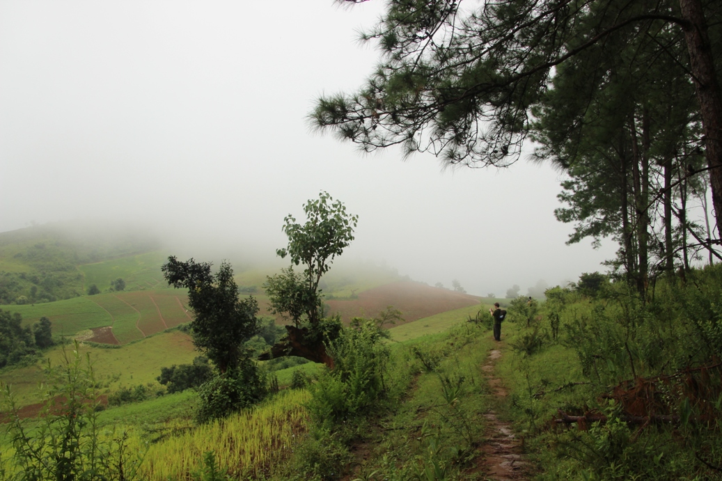 An hour or so in we passed the first village and pine forests began to turn into rice paddies, farmlands and scattered homes. We had reached the lands of the Pa’O people; a Burmese tribal minority. We did take a few pictures but then it began to rain, heavily, so I had to put my camera away and get my anorak out.