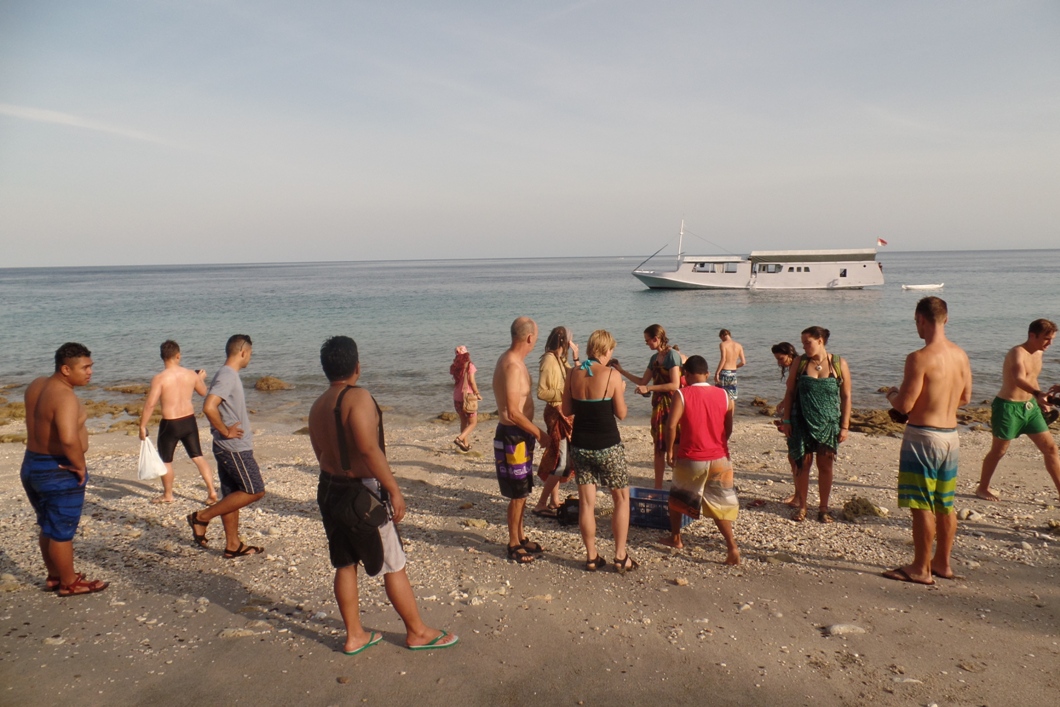 Some of the passengers felt a bit seasick for the first few hours. The tide was particularly choppy that afternoon but I also think it was because they were just getting used to life aboard. By the time we reached Gili Bola, where the boat anchored just after sundown, most of us were feeling well enough to eat supper.