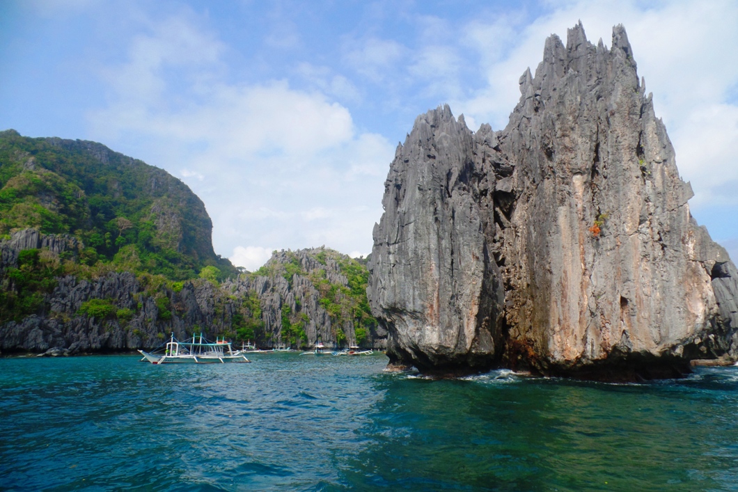 El Nido, with its dramatic landscape of limestone mountains and white sand beaches, is the top tourist destination in Palawan. When we reached there we were greeted by the usual signs of a popular beach experiencing growing pains – inflated prices, cluttered streets, white people outnumbering Asian – but I had already guessed that it was going to be like this so I was mentally prepared. Jody, James, Chloe and I got ourselves a family room (it was one of the cheaper options in town but yet it still cut a bit more into our budgets than we would have liked) and then booked ourselves for ‘Tour A’, to see some sights in the archipelago offshore the next day.