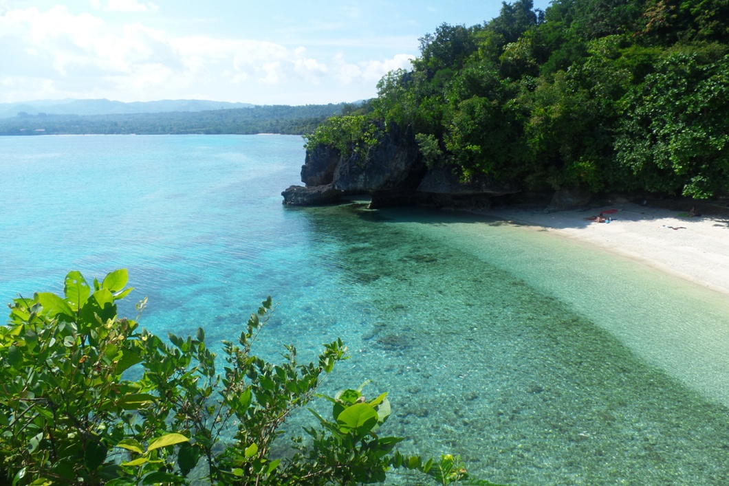 After driving through the middle of Salagdoong Nature Reserve, we reached the beach. It has unfortunately been privatised by government-owned Hotel Apripino, who have built a resort around the seafront, but the amount they charged us to enter wasn’t too extortionate. The beach is still very nice and there is a little peninsular between the two coves, which I climbed and managed to snap a picture of James swimming in the turquoise waters below.