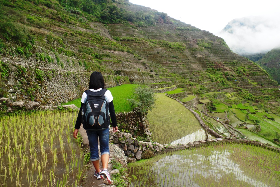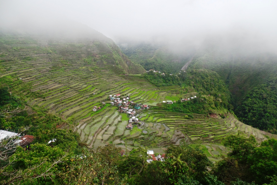 Batad isn’t properly joined up to any roads so we had to get off the jeepney and walk the last few kilometres. We managed to make it to the village in time to see its breathtaking terraces before the sun went down, and then we claimed a dormitory-style room in a simple lodging house. It rained all night, and when we got up the next morning the entire village was so enveloped by fog that all we could see from the balcony was white. We began to worry that we were going to have to rethink our plans to venture out on a trek that day, but luckily the haze gradually lifted and the sun came out.
