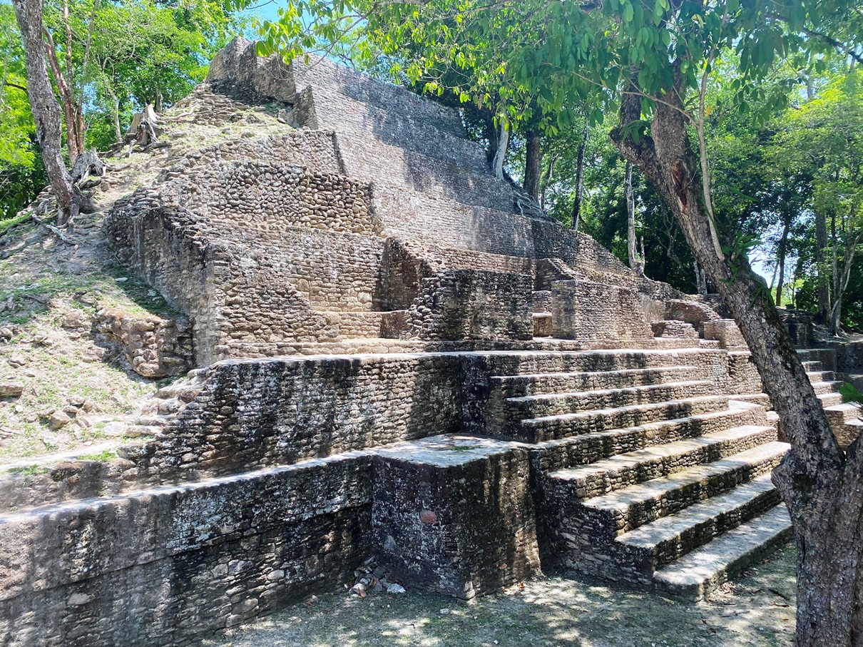 Interestingly, there were some ongoing excavations during my visit. I mentioned in a previous blog that a lot of the older Mayan sites have several layers to them – as they kept building over and over again – and I spoke to the archaeologists and found out that they have so far found a chamber in this pyramid and are currently digging into the floor. Perhaps they will find a burial here. I understand this is fairly common.