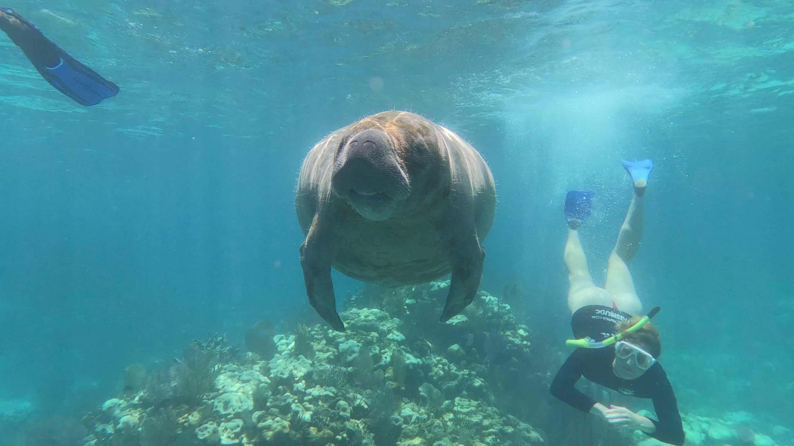 As our boat was cruising towards the marine reserve we noticed that some of the other boats heading that way had stopped and went to investigate. It is the breeding season for manatees and I was hoping that luck was on our side, as I had never seen one before. We asked our boatman to stop, put our snorkels on and jumped into the water.