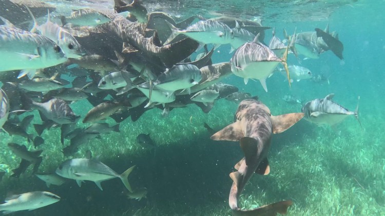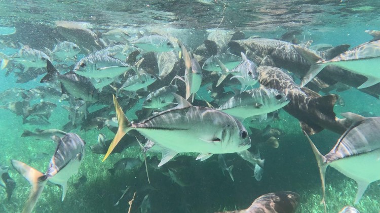 This has become an essential stop for the snorkelling trips at Caye Caulker. I believe that it has always been a place where sharks can be spotted if you are lucky but now sightings are guaranteed because some of the tour companies are feeding them, and, trust me, this is not good for the animals. When you feed wild animals, they often forget how to feed themselves as they come to rely upon it, and creating an association of humans with food can be dangerous, too, because some animals will become aggressive when they do not get what they expect. There have been cases of this happening in places such as Sharm El Sheik in Egypt.