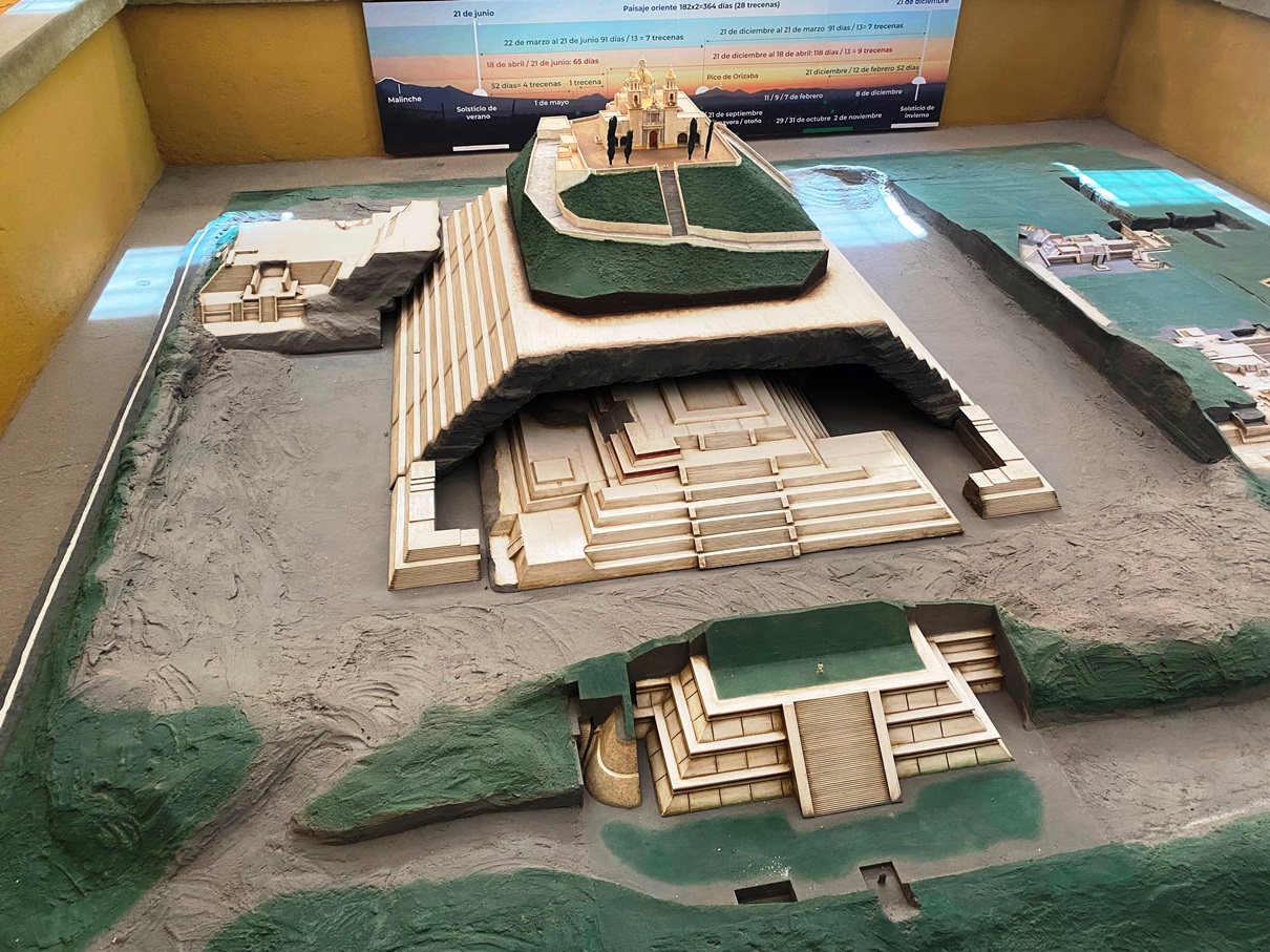 The museum also features some examples of murals, including a partial reconstruction of one discovered in one of the oldest buildings of the temple. The original is over fifty-six meters long and is especially interesting as it features a scene of people attending what appears to be a festival, giving us some clues as to their traditions and the way they dressed. They appear to be drinking pulque, a beverage made from agave that people in the area still drink to this day.