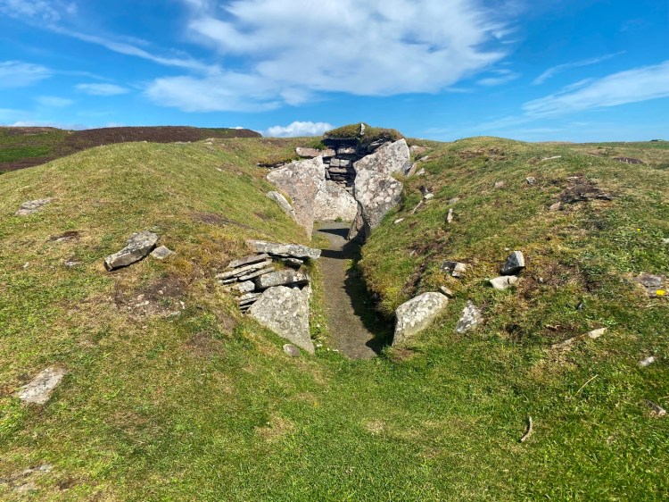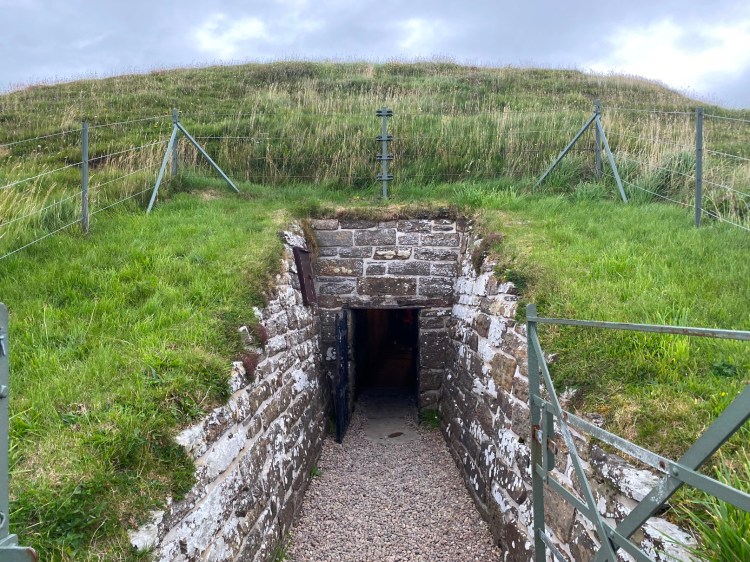 The thing that makes them slightly different experiences as a visitor is that Cuween is a cairn you get to enter as the people of the time did; through a narrow passage tunnel.