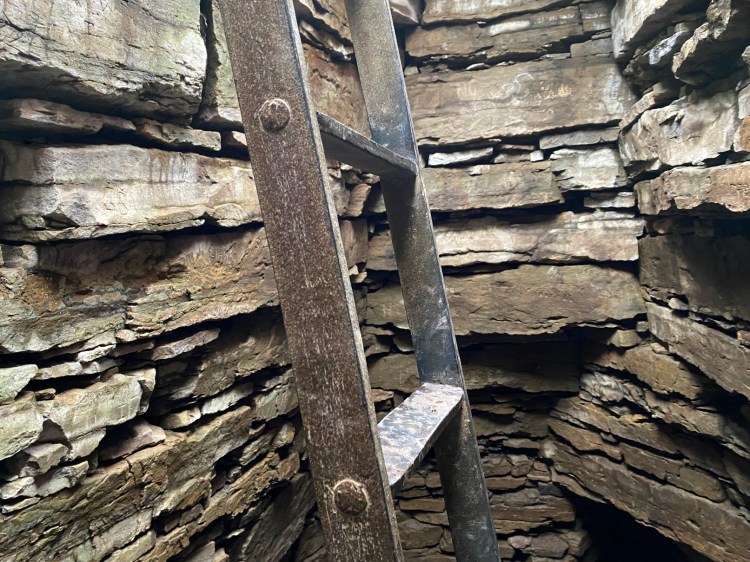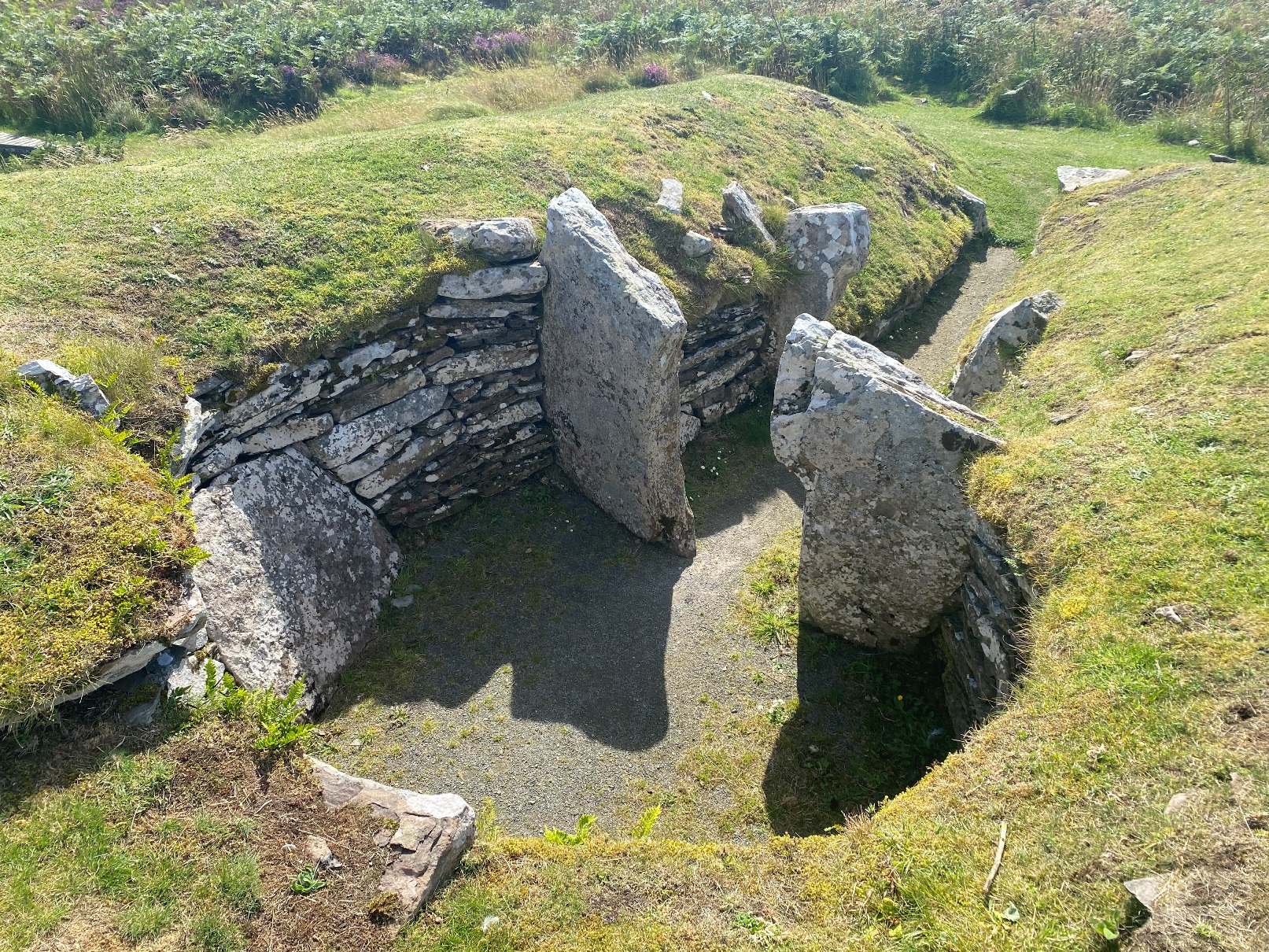 Whereas at Wideford Hill the original passage is not useable for some reason, so Historic Scotland has created a shaft in the roof that one enters through a ladder.