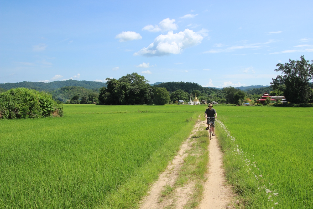 People had told us that Hsipaw had a cooler climate, but they were lying: it was around 35 degrees Celsius, and very humid. When we finally navigated our way through the jigsaw-like paths which criss-crossed between the rice fields we found ourselves in a small village. It was one of those typical, but nice, Asian farming villages. If you’ve travelled off the beaten track in Asia before, you’ll know the kind; the ones where everyone lives in humble homes and live fairly simplistic lives, but they all seem contented and friendly. A mother was on the riverbank, in the process of trying to bathe four very fidgety children by lathering them up with soap and then dunking them into the water while they thrashed around, giggling.